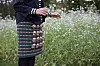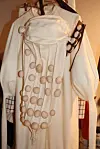 Omkring hende er der æggelignende kunst overalt - på lamper, på sko, i plastikposer. Én for én syer hun æggene på forsiden af en nederdel. De bliver placeret sirligt på række, så de bliver et skjold for livmoderen.