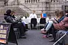 lyder det fra højtalerne, der er placeret på pladsen foran Christiansborg. Den monotone stemmer runger ud over det interimistiske venteværelse, der er installeret i Rigsdagsgården.