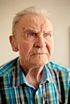 Blikket i de blå øjne bliver fjernt. Han har spolet filmen tilbage og genlever de år, der er samlet i fotoalbums i træreolen ved spisebordet. Han kan lide, hvad han ser i sin indre biograf. Det trækker i hans mundvige.