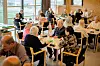 Lise stiller rollatoren, træder ud af sine træsko og tøffer ind i stuen, hvor hun tager plads i stolen ved siden af Bendt.