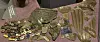 Resterne fra et brændt hus, hvor et lager af glasperler og drikkeglas blev fundet.