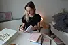 Under en parasol langs poolens kant sidder Liv Bredo Schrøder på en liggestol. I hånden har hun en pensel, og ved sin side en himmelblå tindåse med akvarelfarver. I færd med at udfolde sine kreative evner, maler hun postkort for sig selv.