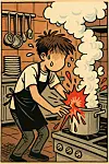 Ifølge Arbejdstilsynet er ca. hver fjerde arbejdsulykke, der anmeldes af unge under 18 år, sket under tilberedning af mad og drikke. Her er den hyppigste skade forbrænding, som udgør mere end halvdelen af disse ulykker.
