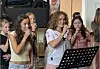 Herinde øver korgruppen i et lille hjørne, hvor læreren, Naja, spiller på et klaver, og seks piger står rundt om i en halvcirkel, og vugger fra side til side i takt med musikken.