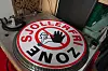 Op ad værelsets væg læner sig et skilt af afrevet bølgepap skrevet med sort tusch.