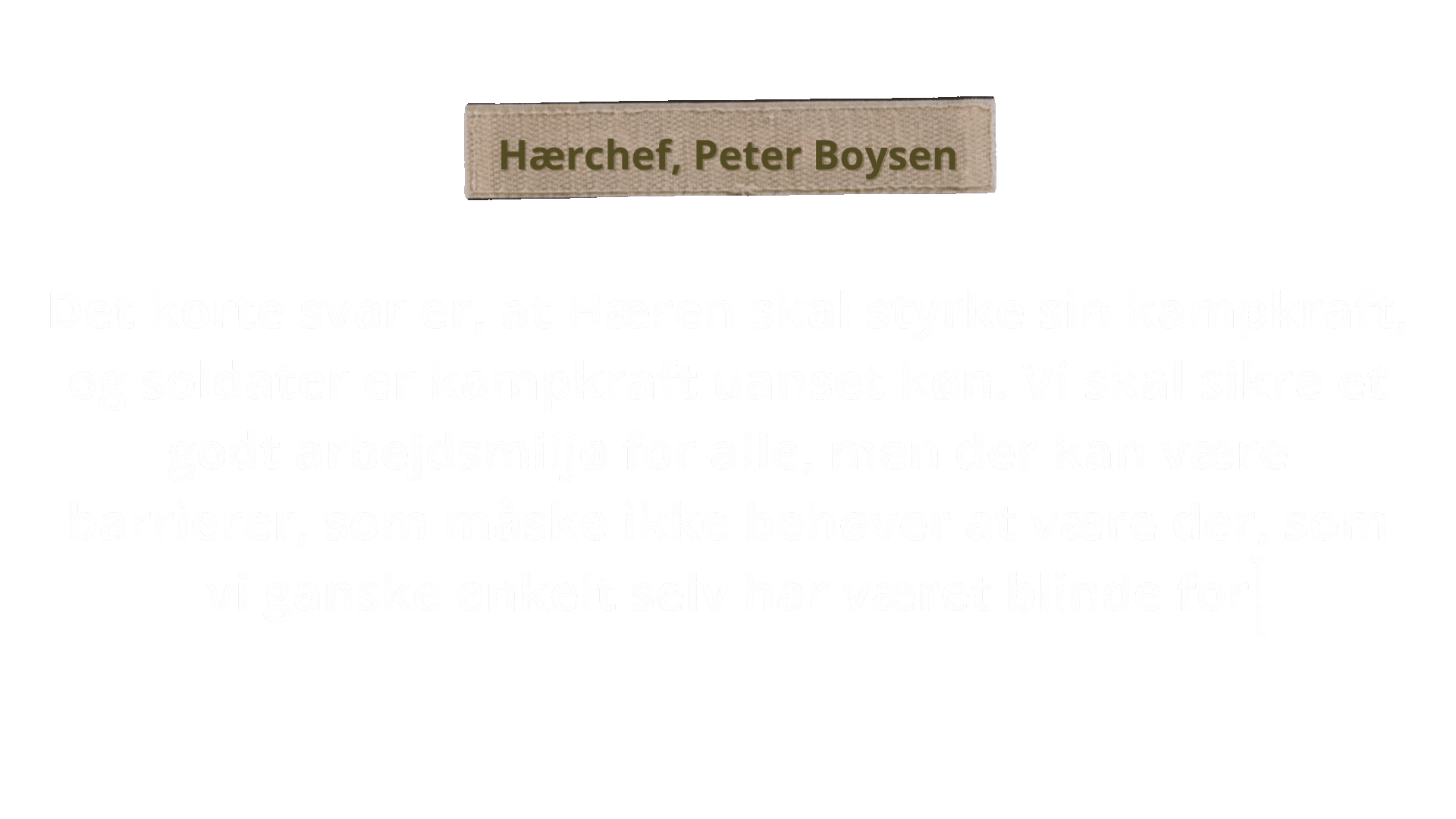 "Men det gør heller ikke noget godt at lade som om køn slet ikke findes, for det gør det. Og det bærer også meget godt med sig. Det er bare vigtigt, at det ikke er det, der dikterer hvem en god soldat er. Det skal kravene på kamppladsen gøre."