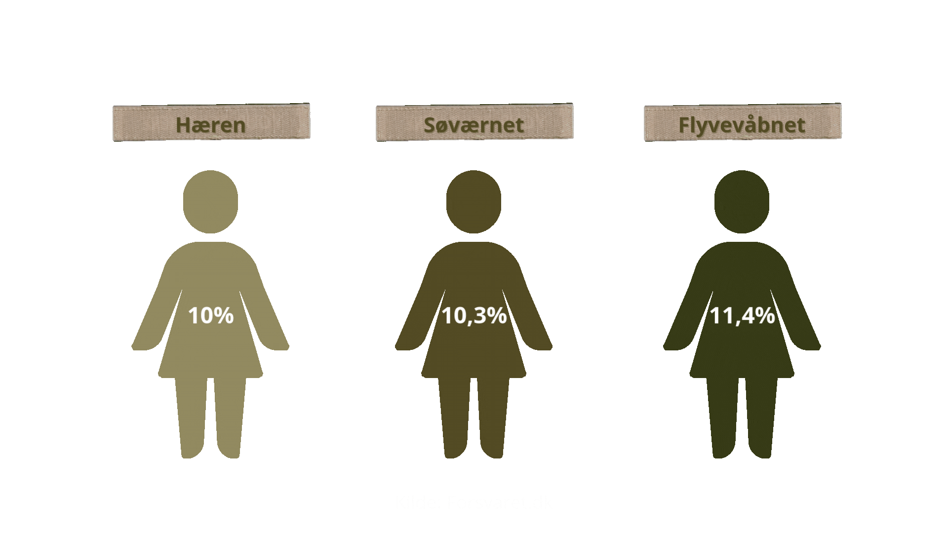 I 2024 kunne man igen konkludere, at Hæren lå på sidstepladsen, når det gjaldt andelen af kvinder i uniform. En placering, som efterhånden er blevet et fast vilkår for værnet, der år efter år har måtte se sig slået af både Søværnet og Flyvevåbnet.