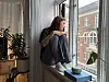 Hun sidder ofte i vinduet og observerer dem, der går nede på gaden.