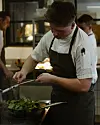 “Vi forsøger at have det sjovt, men det kan godt blive lidt for koncentreret når det skal gå hurtigt”. Et par kokkeelever griner fjoget imens de hakker alverdens krydderurter, leveret direkte fra et madmarked Paris.