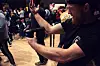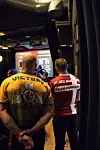 My crash course in arm wrestling gets interrupted by one of the fighters, who