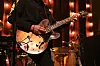 Han bevæger sig rundt på scenen med en rytme, der emmer af rutine, et par skridt tilbage, en rytme i benet og et rokkende hoved, en hånd der justerer guitarens position i en let og nem bevægelse.
