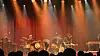 Lars står side om side med resten af bandet, som om det er den naturligste formation i verden, som om scenen selv har tegnet dem sådan.