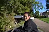 Julie sætter sig ind i politibilen.
