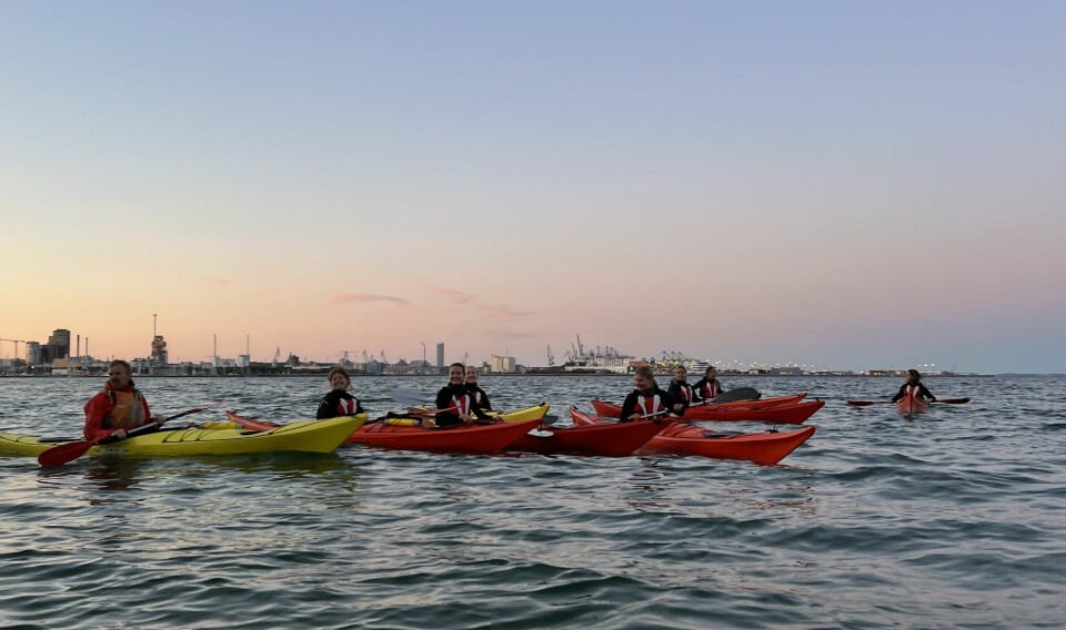 Lyden af våddragter, der gnider mod hinanden, fylder luften. Med en kajak i hver hånd kæmper ni studerende sig ned til vandkanten. Selvom det er koldt, er der varmt under dragten.