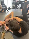 ”Fedt!”, lyder det fra salen, og kvinderne griner. Her bliver instruktør Anne Mikkelsen dog nødt til at afklare overfor holdet, at det selvfølgelig ikke er teknik til at kvæle andre, men teknik til at forsvare sig selv mod kvælninger. Herefter justeres der på øvelsen. Fra at stå ansigt til ansigt, skal skuespillet nu foregå på jorden. En person over en anden med hænderne rundt om vedkommendes hals.