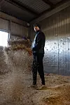 Han føler sig tilpas, som sædvanlig, når han passer sine heste. Da Mads stod op i morges, fodrede han sine seks heste, før han lukkede dem ud. Det gør han hver morgen, inden han kører på arbejde.