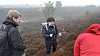 Efter en gåtur gennem skoven nærmede flokken af biologistuderende sig en lysning ud mod heden, hvor Jakobine Steensigs hånd straks røg i vejret.