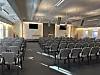 Ved rigssalen står rullekufferter op ad væggen, som vidner om forkyndelsen på gaden. Indenfor dufter der rent. Diskotern i grå nuancer dækker gulvet, grønne planter står i hjørnerne, og cognacbrune Arne Jacobsen-stole står ophøjet på et lille plateau. De lerbrune vægge har opslagstavler med informationer, og lamperne i loftet minder om dem, man finder i et klasselokale. To store fladskærme hænger bag talerstolen.