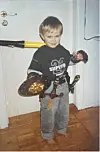 En 4-årig Abby står i sit barndomshjem. Hun har to sværd i forlommen på sine cowboybukser, et skjold, en sort hættetrøje og lyssværd bag sig. Smilet er tilpas stort til, at mellemrummet mellem de to fortænder vises frem. En simpel tid.