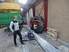Jonas Ellitsgaard Jensen tager plads ved bordet og fylder sin kop, lavet af keramik og prydet med en lyserød gris, op med sort kaffe. Selvom den tykke betonmur adskiller grisestalden med det lille køkken, overdøver den syrlige lugt af svin stadig duften af kaffe, idet han hælder op.