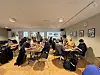 Det er nemlig et stærkt felt der er samlet om de fire lakerede træborde i gul stue på Aarhus Hostel.