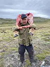 Efter to timers omhyggelig partering af oksen, spænder Ole og hans søn udskæringerne fast om deres kroppe og begynder turen hjem.