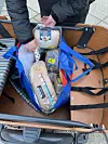 "It works like this: they ask you, 'Do you want this? And this?' And you can say yes or no. Depending on what you want and what you are missing at home. They then put it in the bag. And when the bag is full and heavy, they simply say stop. And the next person goes in," says Kristen, who is also standing in the queue.