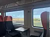 En herre med cykelstyrsoverskæg sidder ved et bord overfor en ven med vandkæmmet hår. De lovpriser komforten ved den nye indretning. “Vi prøvede at spise rundstykker i det gamle tog, men der var intet bord!” Nu er rundstykkerne udskiftet med dåseøl, og snakken går livligt på, hvordan batterierne oplader sig selv, når toget holder ved stationerne. “Det er fantastisk smart!”