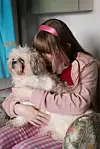 Loui banker snuden mod Julies knæ, inden han får lov at kravle op i hendes skød.