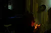 af indgangen og knapper en øl op. Røgen fra cigaretterne blandes med den kolde