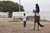 Zakaria vender hesten rundt.